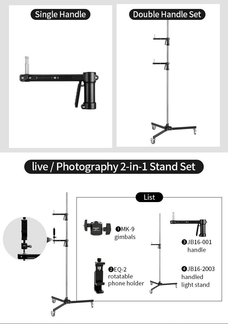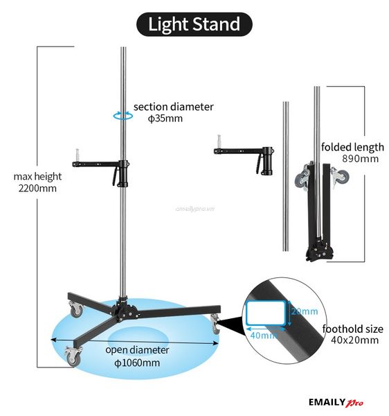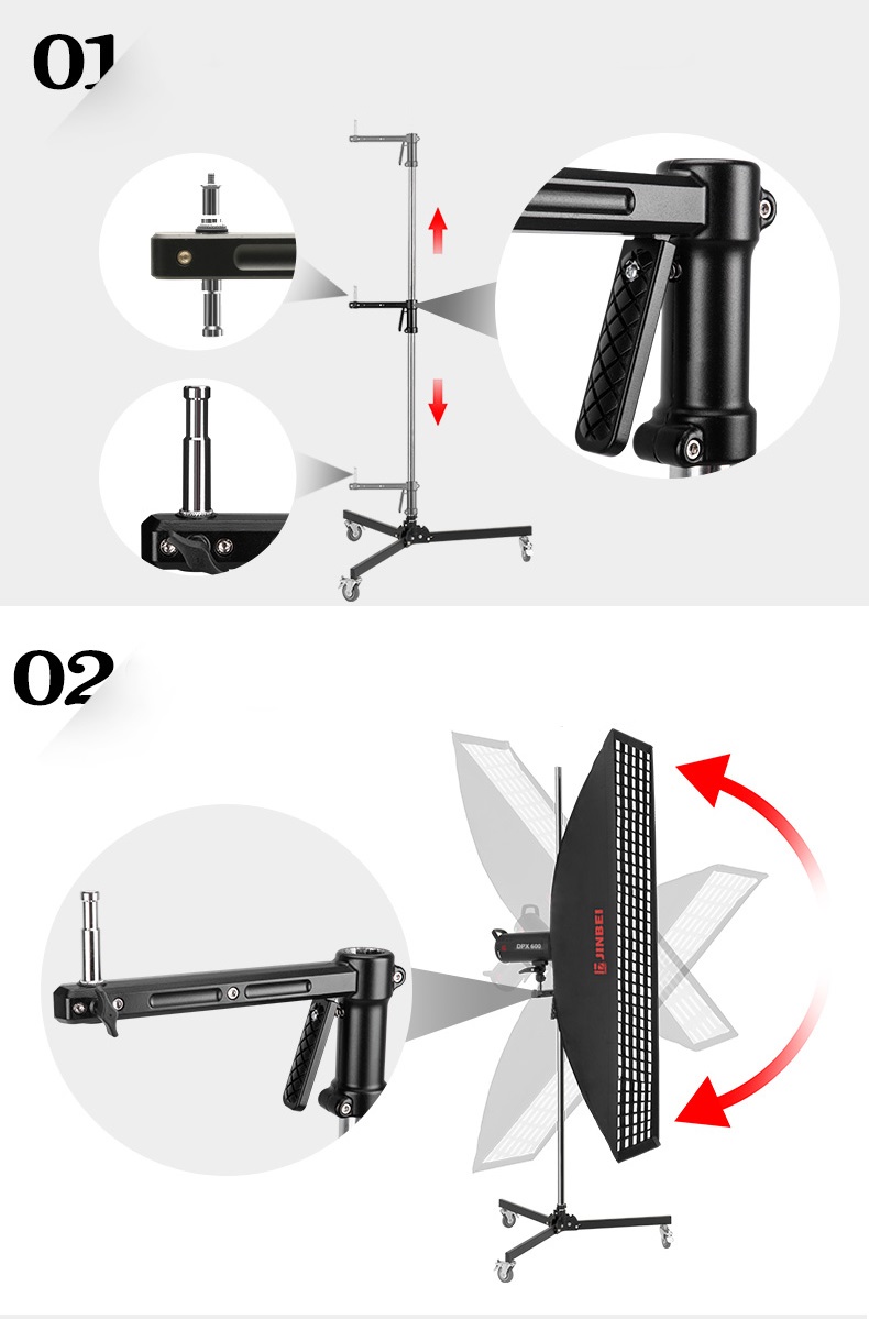 Đa Năng và Tiện Lợi: Không chỉ là một chân đèn thông thường, Jinbei JB-16 còn được trang bị bệ có ren 1/4"-20, cho phép bạn gắn thêm các phụ kiện như khay đựng laptop, bàn máy tính xách tay hoặc các thiết bị hỗ trợ khác. Điều này giúp tối ưu hóa không gian làm việc và tăng cường hiệu quả công việc.
