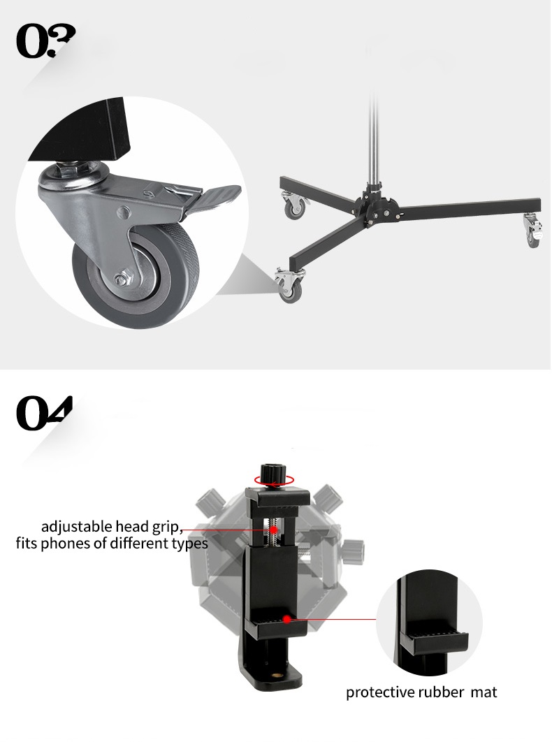Thiết Kế Chắc Chắn và Di Động: Với phần đế thấp và chắc chắn, chân đèn Jinbei JB-16 đảm bảo sự ổn định cho thiết bị chiếu sáng của bạn, ngay cả khi phải chịu tải trọng lớn. Bánh xe tích hợp giúp việc di chuyển chân đèn trở nên dễ dàng và thuận tiện hơn bao giờ hết, đặc biệt hữu ích trong các studio có không gian rộng.