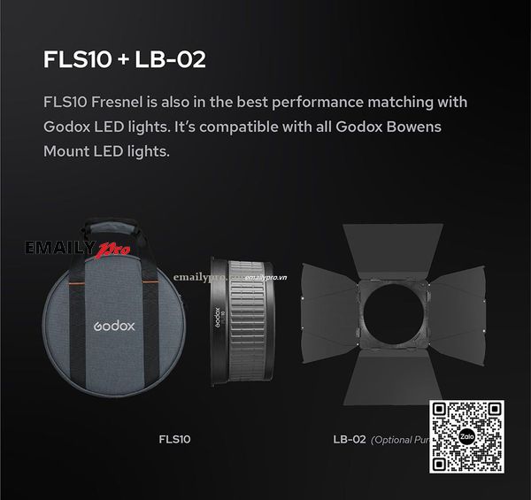 Combo Fresnel Godox FLS10 & Barndoor LB-02 là giải pháp hoàn hảo để kiểm soát và khuếch đại ánh sáng, đáp ứng nhu cầu khắt khe của các nhà quay phim, nhiếp ảnh gia chuyên nghiệp trong lĩnh vực điện ảnh, sân khấu, thương mại, quảng cáo và thời trang.