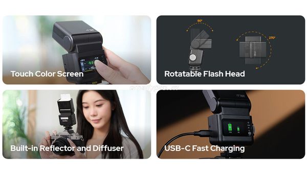 Là một công cụ chiếu sáng nhỏ gọn và đa năng, đèn flash này có dải công suất có thể điều chỉnh từ 1/128 đến 1/1 với các tùy chọn tinh chỉnh, thời gian hồi 1,5 giây, hỗ trợ HSS, màn hình cảm ứng màu và đèn mô hình LED tiện lợi. iT32 hoạt động bằng pin sạc USB-C tích hợp để cung cấp tới 510 lần nháy đèn công suất tối đa