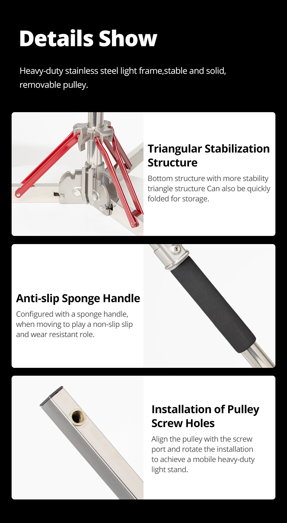 E.PRO New C-STAND EM-300S là chân đèn chuyên nghiệp được thiết kế để đáp ứng nhu cầu của các nhiếp ảnh gia và phòng chụp studio. Với khả năng chịu tải trọng lớn, chất liệu bền bỉ và tính năng di động, sản phẩm này là một lựa chọn lý tưởng cho mọi thiết lập ánh sáng.