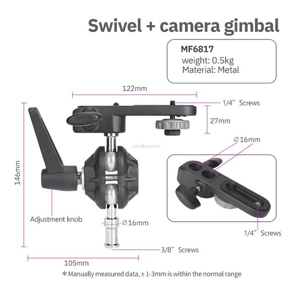 Kẹp chuyển đổi đa năng MF6817 E.PRO được thiết kế đặc biệt để tương thích với nhiều loại máy ảnh khác nhau, giúp bạn dễ dàng chuyển đổi và kết nối các thiết bị một cách nhanh chóng. Với chất liệu cao cấp và cấu trúc chắc chắn, sản phẩm này đảm bảo độ bền và ổn định trong suốt quá trình sử dụng.