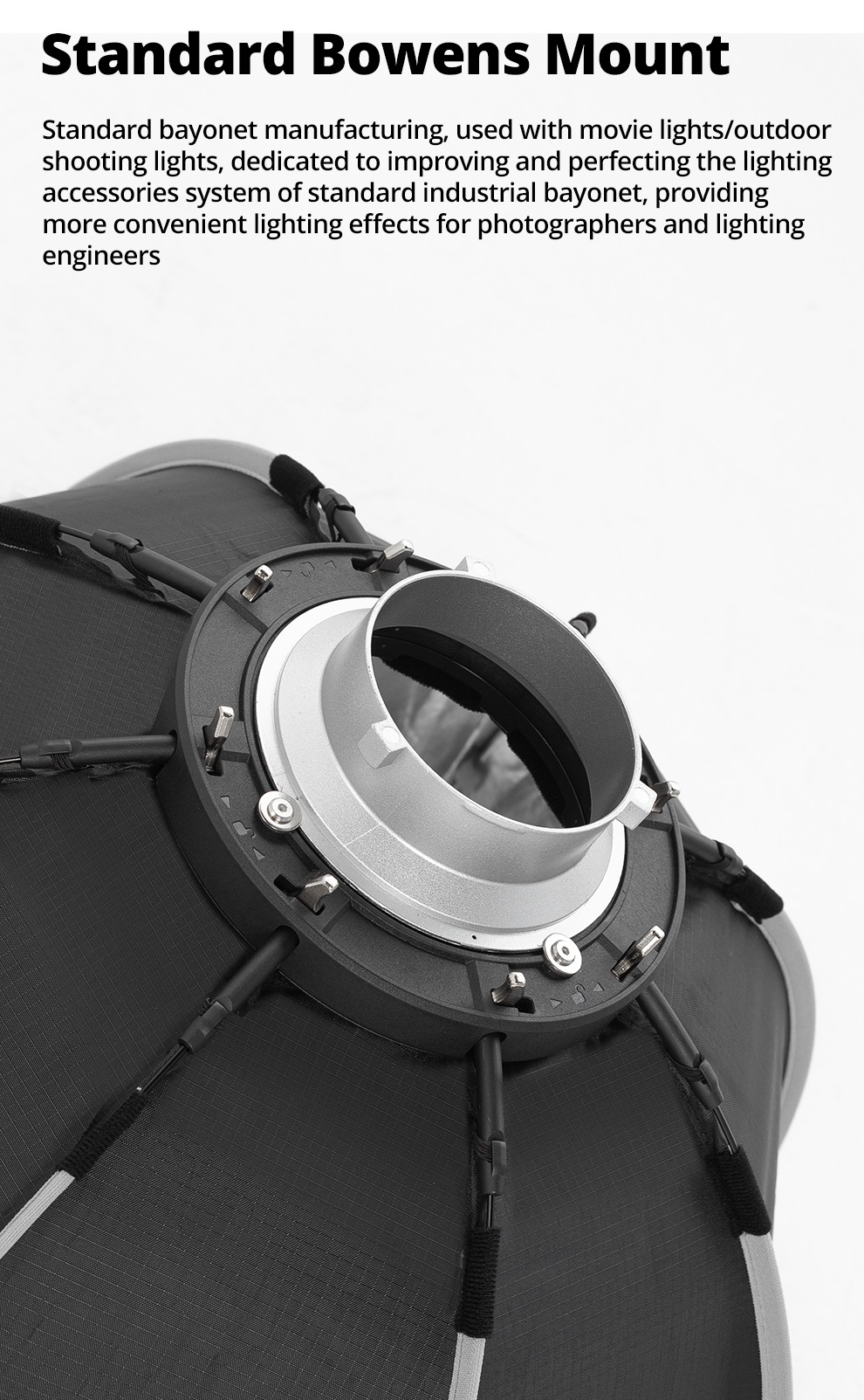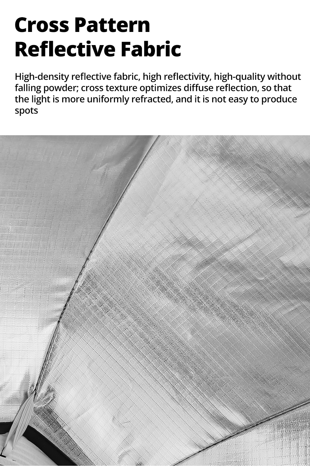 Cấu trúc của Softbox được củng cố bởi 08 thanh hỗ trợ bằng sợi thủy tinh và kim loại bền bỉ, trong khi đó vách ngăn màu bạc giúp tối đa hóa lượng ánh sáng, cung cấp nhiều tùy chọn để khuếch tán nguồn sáng của bạn, cho phép bạn có nhiều sự lựa chọn sáng tạo hơn.