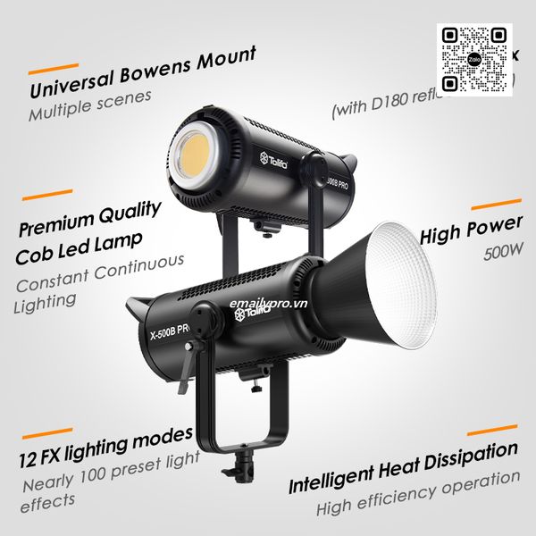 - Công suất cao: X-500B Pro và X-600B Pro sở hữu công suất lần lượt là 500W và 600W, cung cấp nguồn sáng mạnh mẽ, đáp ứng mọi yêu cầu về độ sáng trong các môi trường quay phim và chụp ảnh khác nhau.