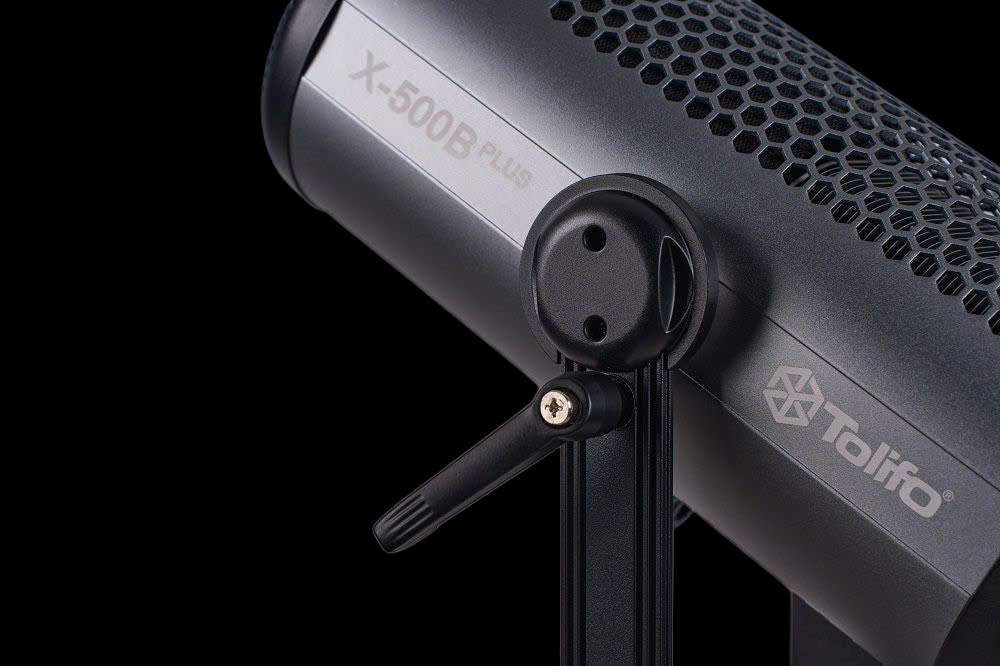 Tay cầm và ngàm gắn: thuận tiện khi lắp đặt trên chân đèn hoặc giá treo