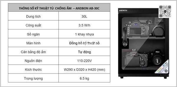 - Bảo vệ hoàn hảo cho thiết bị điện tử máy ảnh ống kính Bạn đang tìm kiếm giải pháp bảo quản tối ưu cho các thiết bị điện tử, linh kiện điện tử nhạy cảm với độ ẩm? Tủ chống ẩm ANDBON AB 30C là sự lựa chọn hoàn hảo, mang đến môi trường bảo quản lý tưởng, giúp kéo dài tuổi thọ và hiệu suất hoạt động của thiết bị.