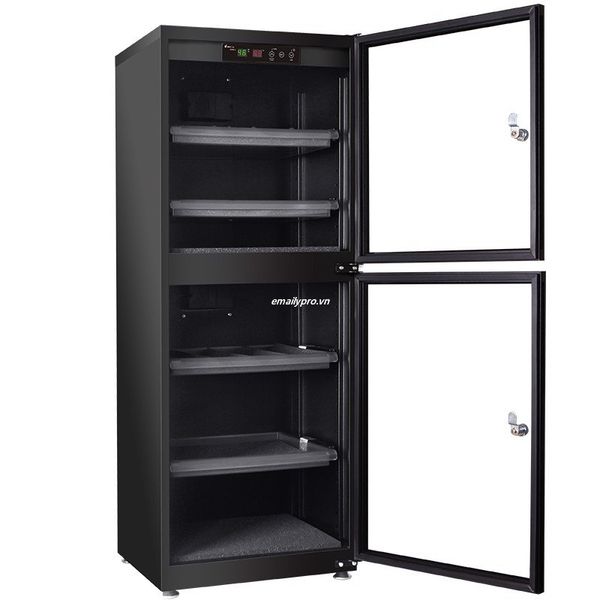 Tủ chống ẩm EIRMAI MRD-188s được thiết kế dạng đứng, sở hữu kích thước lớn với 2 khoang riêng biệt, đáp ứng nhu cầu lưu trữ đa dạng của các nhiếp ảnh gia chuyên nghiệp. Mỗi khoang hoạt động độc lập với 2 block gồm 2 IC hút ẩm và làm lạnh, đảm bảo độ chính xác và hiệu quả cao trong việc kiểm soát độ ẩm.